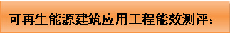 可再生能源建筑應用工程能效測評是指對地源熱泵系統、太陽能熱利用系統、太陽能光伏系統進行指標評價、性能合格判定和性能分級評價,以及節能效益、環境效益、經濟效益評估。
